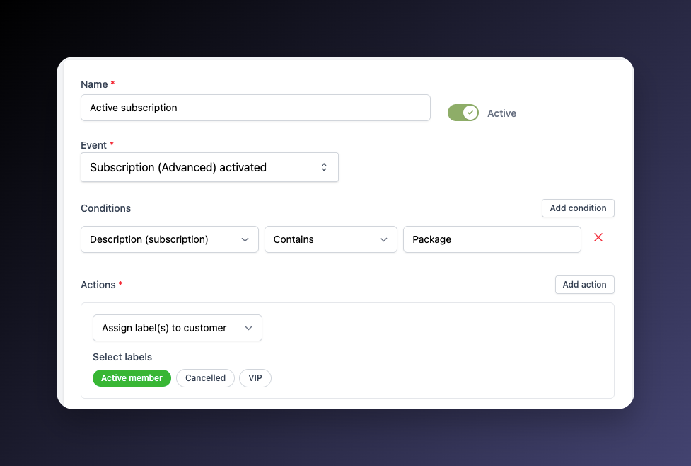 With this update, you can now create workflows that automatically assign labels to customers based on specific events. This new feature can be used by users of the Expert or Professional plan.